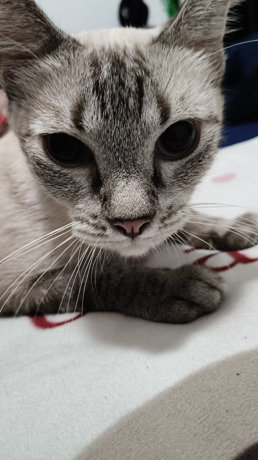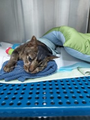 Cherry weighed only 1kg, was very weak and frail when rescued. Covered in parasites, with worms, mites, and fleas. We nursed her back to health, and was 3kg when rehomed.